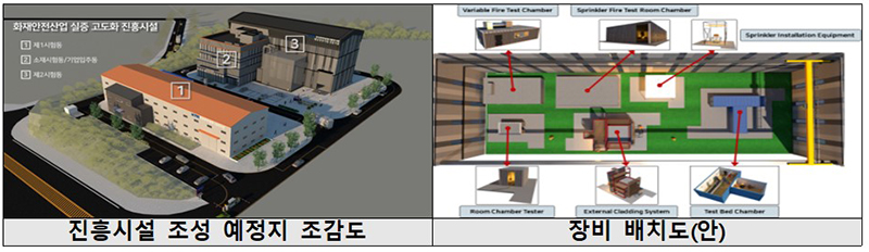 이번에 조성하는 진흥시설은 건축 자재 내화시험과 화재 대응·복구 등에 사용되는 재난안전 기술과 제품에 대한 성능시험·평가, 연구개발, 국내·외 판로개척 등을 종합적으로 지원한다.