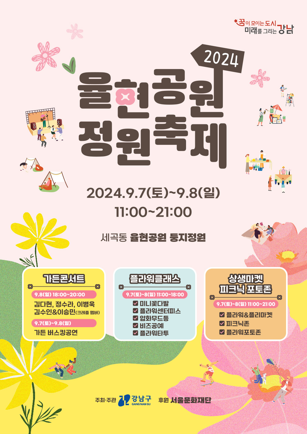 꿈이 모이는 도시, 미래를 그리는 강남구(구청장 조성명)가 9월 7일부터 8일까지(오전 11시~오후 9시) 세곡동 율현공원 둥지정원에서 정원축제를 개최한다.